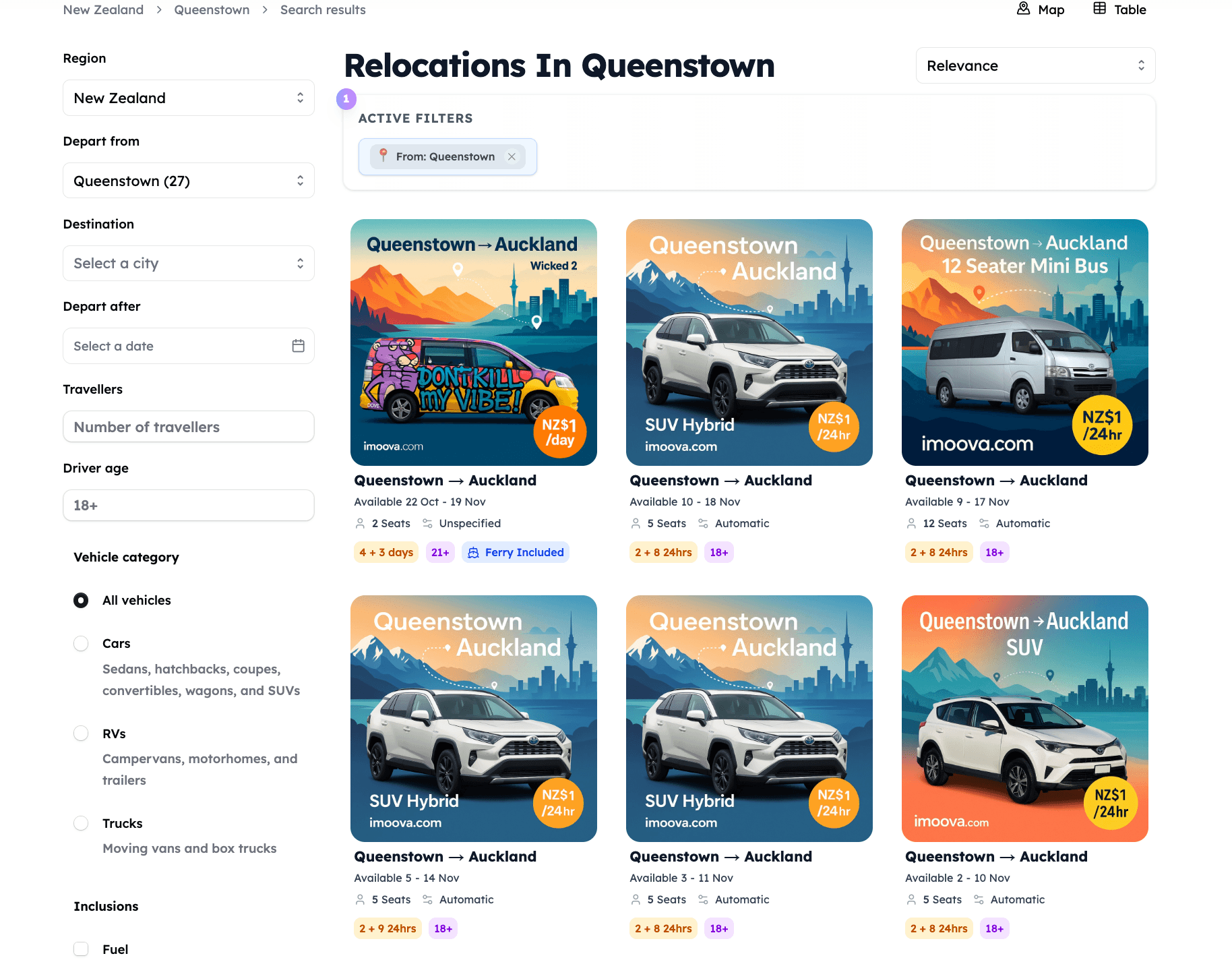 Imoova partners with top rental companies needing vehicles relocated between cities. Travellers can drive these cars, vans, or campervans for as little as $1/day, often with fuel or ferry allowances included.